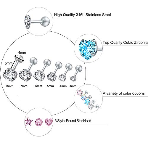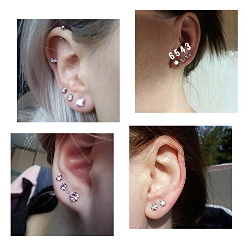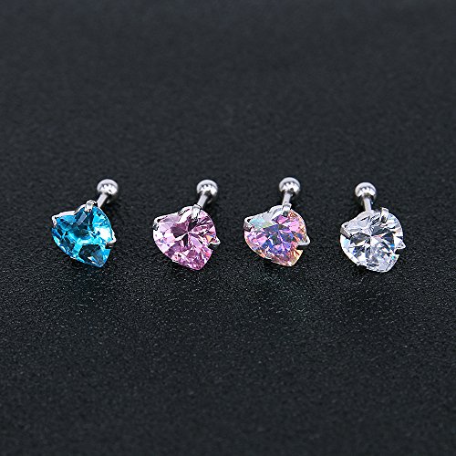 Spécification: 4 Paires de Boucles d’oreilles en Acier Chirurgical en Zircone Cubique Brillante, Ensembles de Cartilage Piercing Tragus Helix Conch Piercing, Acier Chirurgical Zircone cubique, zircone cubique