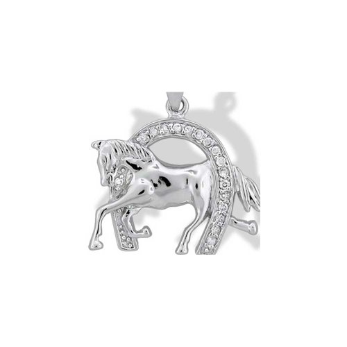 Ce pendentif fer à cheval est fait d’Argent Sterling .925 ouvrir et zircons. Conception détaillée avec élégance capture un running horse dans un style superbe et la beauté. Le cheval s’exécute sous un fer à cheval, claire incrustée de zircons étincelants. Ce cheval bijoux a un look poli, qui a créé un cadre classique et élégant. C’est le cadeau parfait pour les femmes qui aiment les chevaux et de fers. Horseshoe pendentifs sont pensés pour porter chance par de nombreux et sont portés comme bonne chance charms, ainsi obtenez le vôtre dès aujourd’hui. Inclus la chaîne.