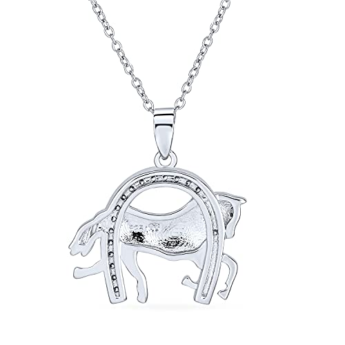Spécification: Bling Jewelry Pendentif De Cheval Gagnant De Race Équestre Cow Girl CZ Pave Collier Fer À Cheval Bijoux De L’Ouest Pour Femmes En Argent Sterling .925