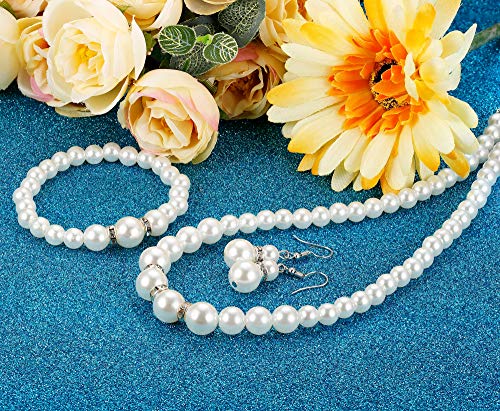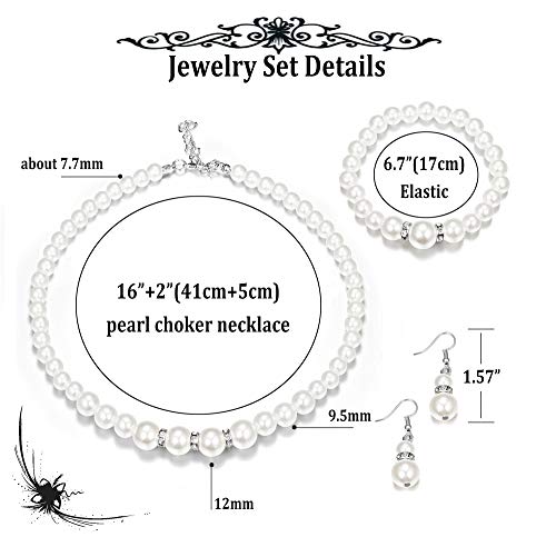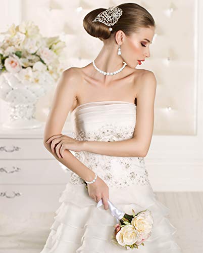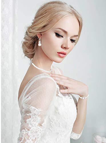 Spécification: Finrezio Perles Parure de Collier Bracelet et Boucles d’oreilles pour Femme Mariée Mariage Bal Soirée