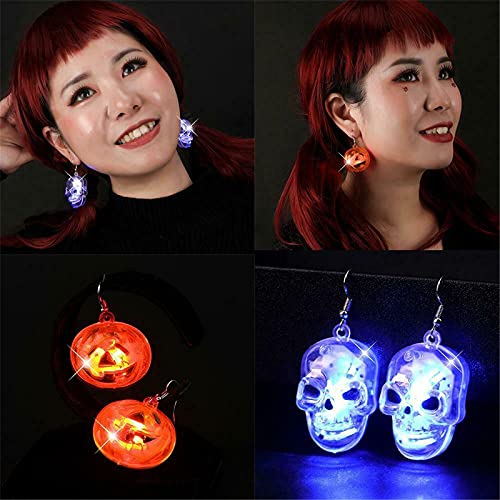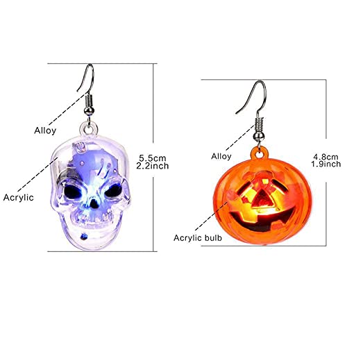 LED Lighted Skull Earrings Halloween Earrings, Glow in The Dark Halloween Earrings, Halloween Theme Party Dangle Earrings, Halloween Pumpkin Earrings for Women and Girls