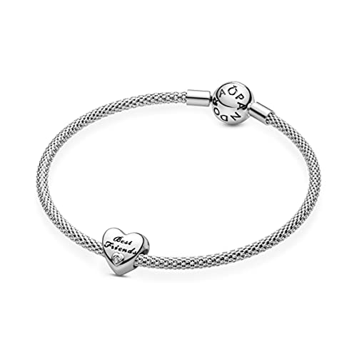 Charm Cœur en Argent 925/1000e avec 2 oxydes de zirconium sertis en plein en forme de cœur, gravé des mots >. Métal: Argent Couleur: Transparent Pierres: Zircon cubique Garantie: 2 ans