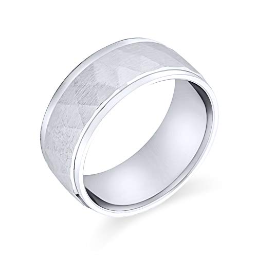 Spécification: Personnaliser Personnaliser Graver Élégant Unisexe Couples Taille Diamant Multi Facettes Prism Motif Bague De Mariage Pour Hommes Femmes Brossé Finition .925 Argent Sterling 8Mm Large