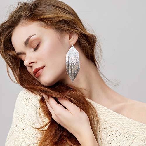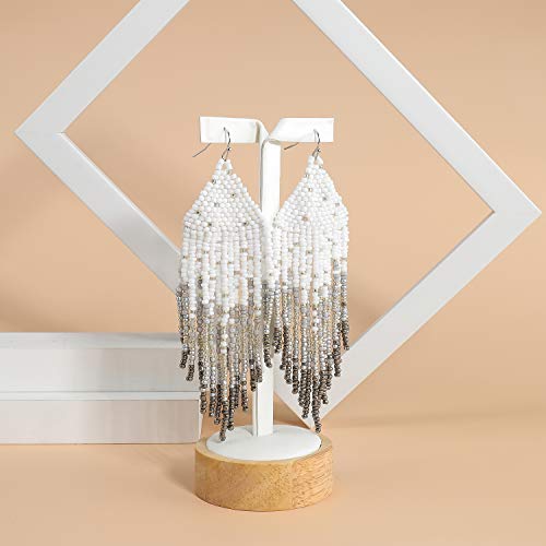 Spécification: PLTGOOD Boho Tassel Dangle Earrings for Women – Handmade Miyuki Delica Seed Beads Fringe Earrings Long Statement Earrings Jewelry