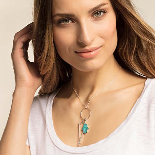 Symbole de protection : la main de Fatima en Charm aux fins détails avec une pierre turquoise gravée.