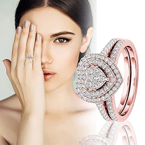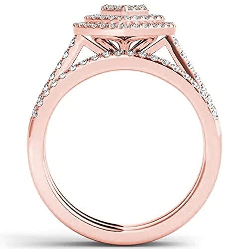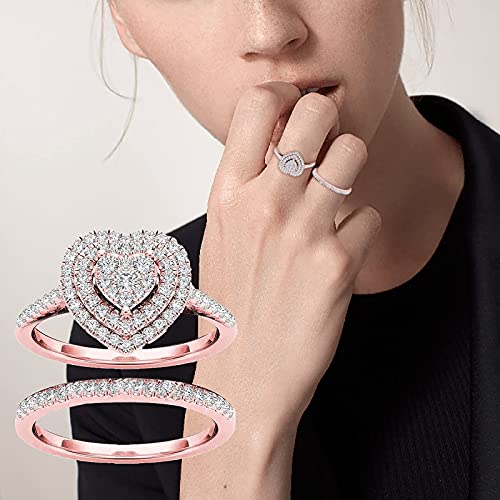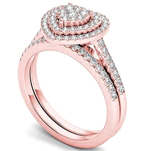 Women Engagement Ring,Love Heart Shaped Full Diamond Love Shaped Ring, Cushion Cut Halo Wedding Rings, WomenFashion Carving Diamond Bridal Ring for Girlfriend,Gift for Valentine’s Day (Rose Gold,8)
